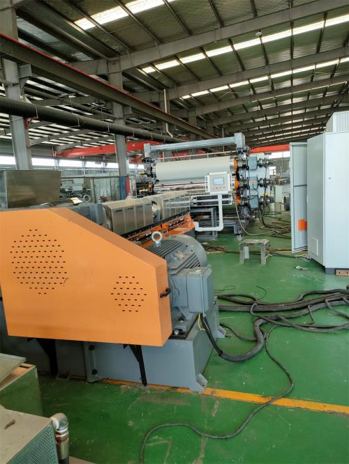 單螺桿片材擠出機_單螺桿片材擠出機_佳德 110升密煉機/JDL-150單螺桿片材生產線一、系統(tǒng)機組技術參數Ⅰ、機器顏色:主機為:公司標色;電柜為:電腦色;防護罩:黃色Ⅱ、擠出工藝:110升密煉機-——自動提升機——錐雙喂料機——150單螺桿擠出機——液壓板式換網系統(tǒng)------片材擠出模具-----三輥壓光------三輥冷卻系統(tǒng)-----下覆膜裝置-------托架冷卻------冷卻牽引-----切邊裝置-------計米器------在線剪板機------單工位摩擦收卷機----主機采用:PLC控制Ⅲ、加工物料:POE汽車內飾片材,EVA內飾片材要 求:制品寬度:1300mm 制品厚度:1-4mm產 能:600~800公斤/小時 注意事項:取決于客戶的配方、工藝、生產條件設備特點:這套設備主機是環(huán)保型;整套設備不需要接外循環(huán)水系統(tǒng);自帶循環(huán)冷卻統(tǒng)是我公司專利產品(發(fā)明專利號:CN201911312134.6)1.最大好處:主機0水排放;無水污染;環(huán)保好過2.齒輪箱冷卻采用:采用環(huán)保冷卻系統(tǒng)(環(huán)保型:發(fā)明專利號:CN201911312134.6)不需要接外循環(huán)水冷卻,不用徘外水;單螺桿片材擠出機采用閉環(huán)循環(huán)系統(tǒng),不用擔心長時間使用水冷卻會產生水垢把冷卻器堵住,導致齒輪箱損壞3.主機水箱冷卻系統(tǒng)采用:采用環(huán)保冷卻系統(tǒng)(環(huán)保型:發(fā)明專利號:CN201911312134.6)不需要接外循環(huán)水冷卻,不用徘外水;采用閉環(huán)循環(huán)系統(tǒng),4.真空泵采用環(huán)保冷卻系統(tǒng)(環(huán)保型:發(fā)明專利號:CN201911312115.3)不需要接外循環(huán)水冷卻,不用徘外水;